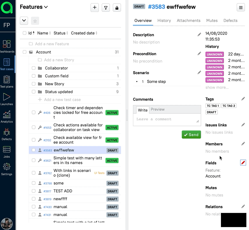 - Added filter by status in test history. A good test has a lot of results and they are not always green. That's why we added a Status filtering option to test history: find all the runs where a test case was passed, failed, broken, skipped, or unknown and investigate! It works in the Test cases section and in the test results launch tab. Click here for a GIF