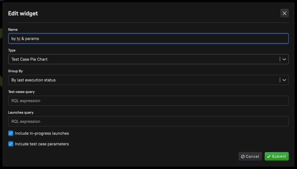- Test case parameters can now be included in Test Case Pie Chart by last execution status. A helpful option in case you're running a lot of parameterized tests and some of them fail.