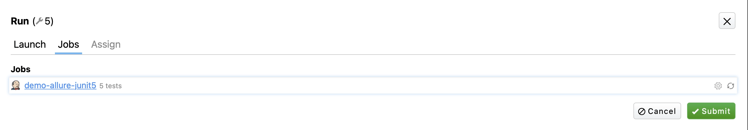 The feature also allows reassigning and configuration of jobs for a launch. This is useful if you want to reassign the job to run tests, e.g. from PR job to Stable job on CI.