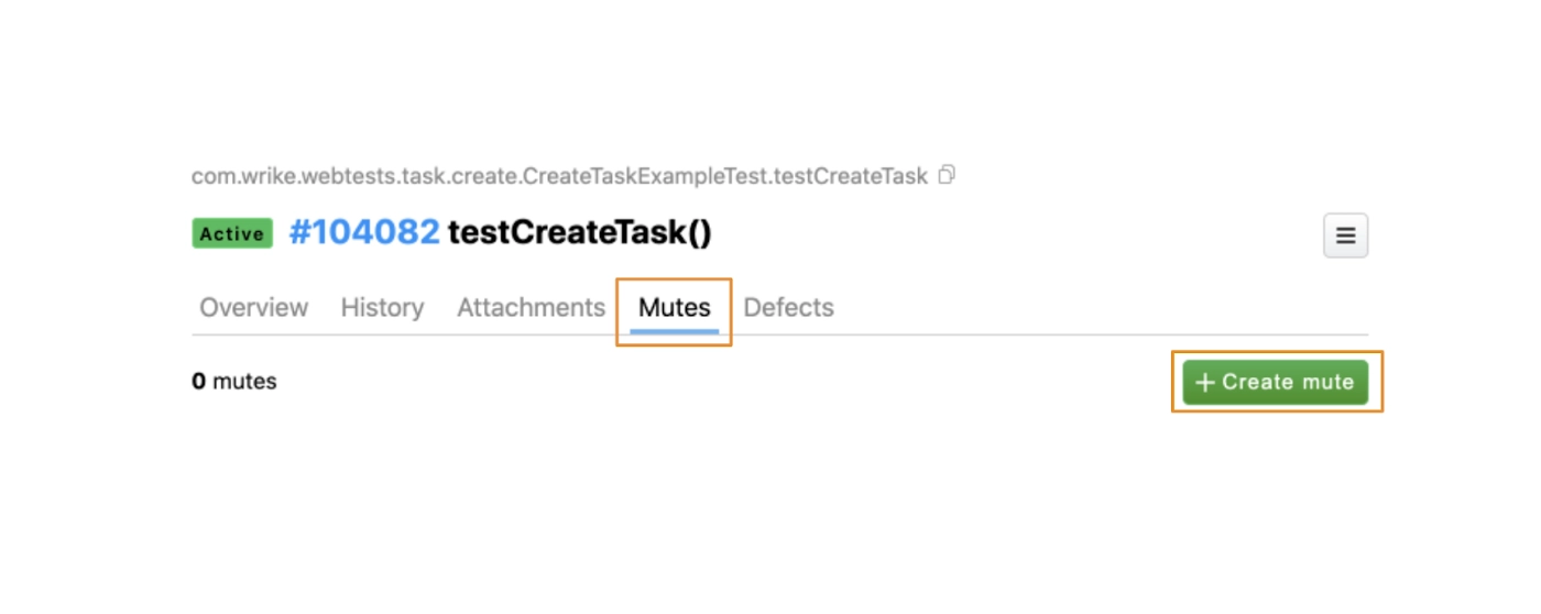 To do so, in Allure TestOps there’s a tab called Mutes, in which there’s a button “create mute” that allows us to mute the test: