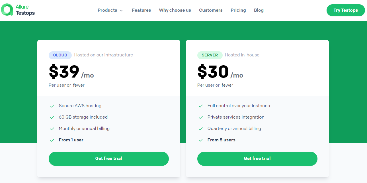Allure TestOps Cloud is a DevOps-ready testing platform that aims to optimize the testing process and boost software development pace. It maintains and secures your TestOps instance – no IT required.